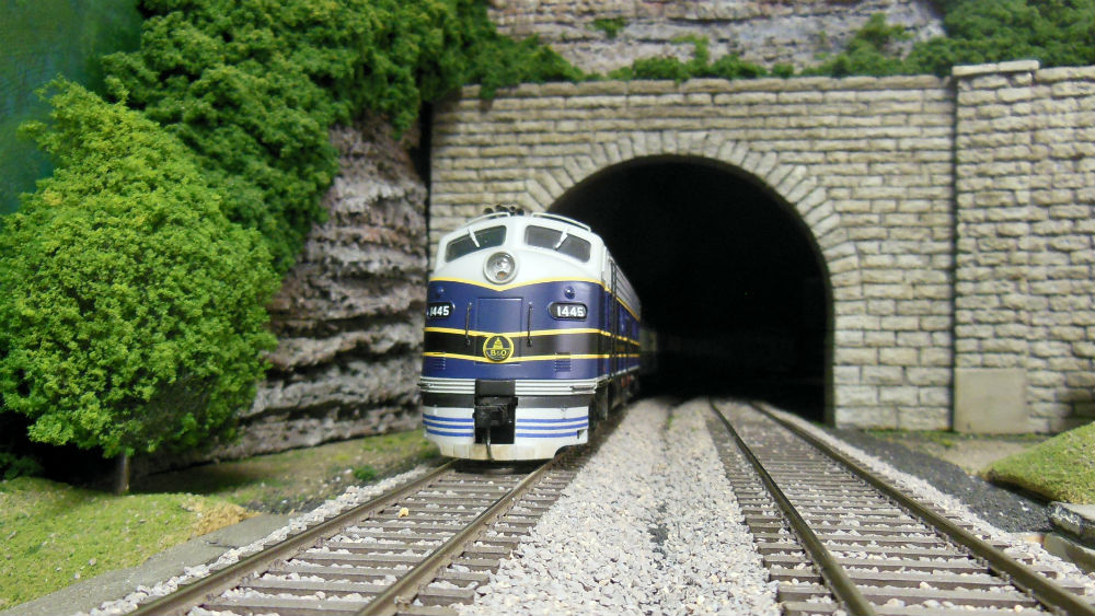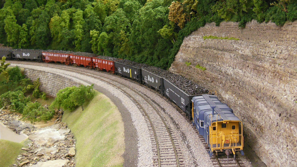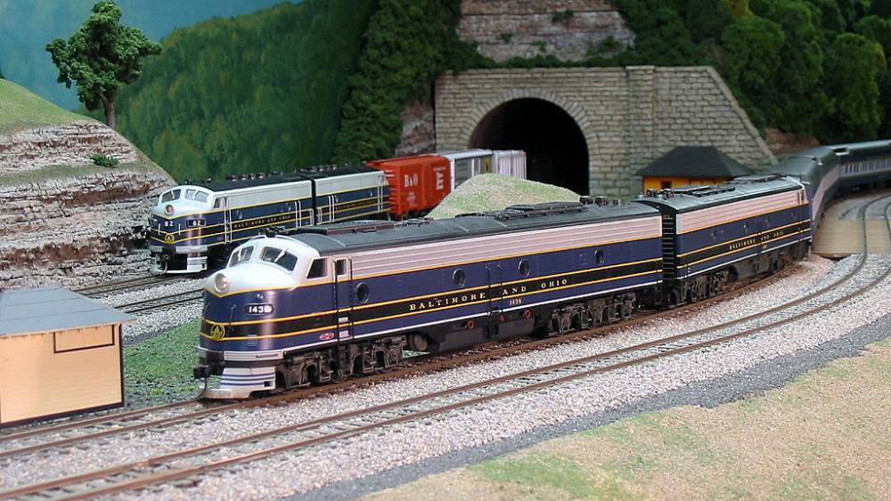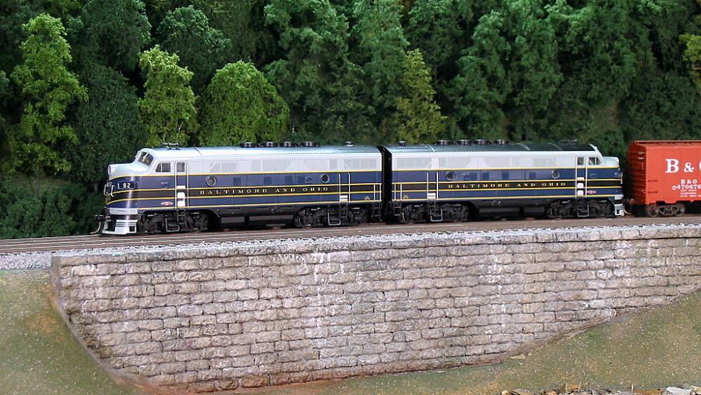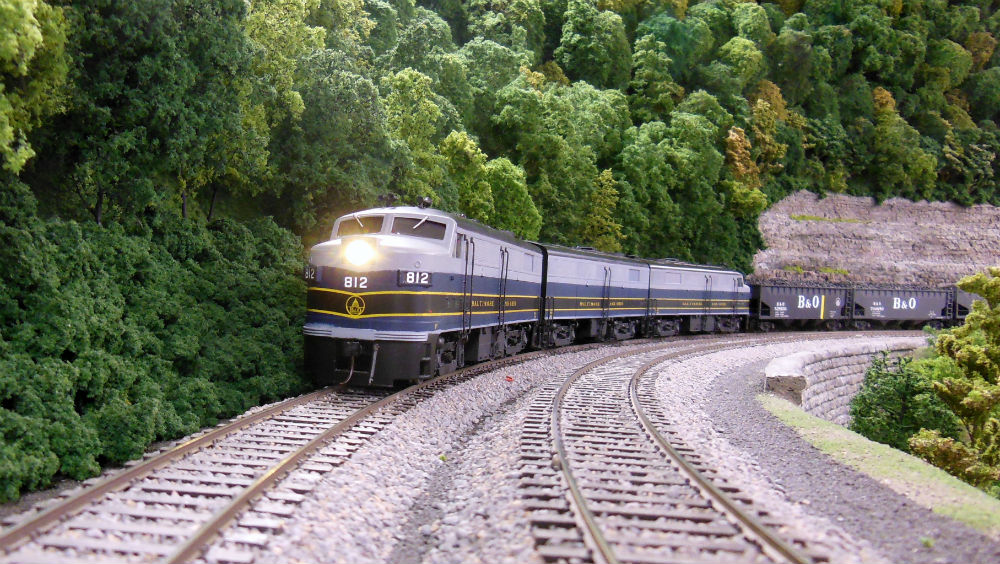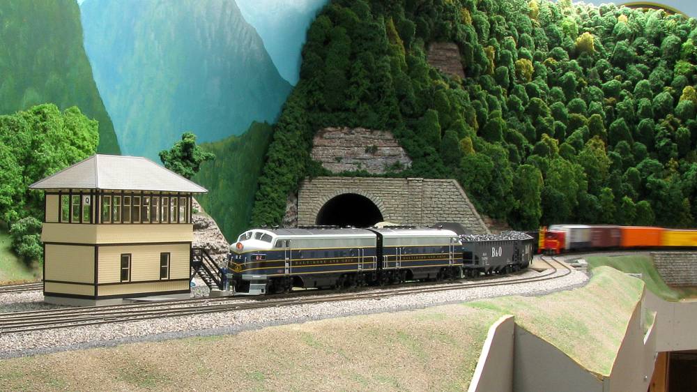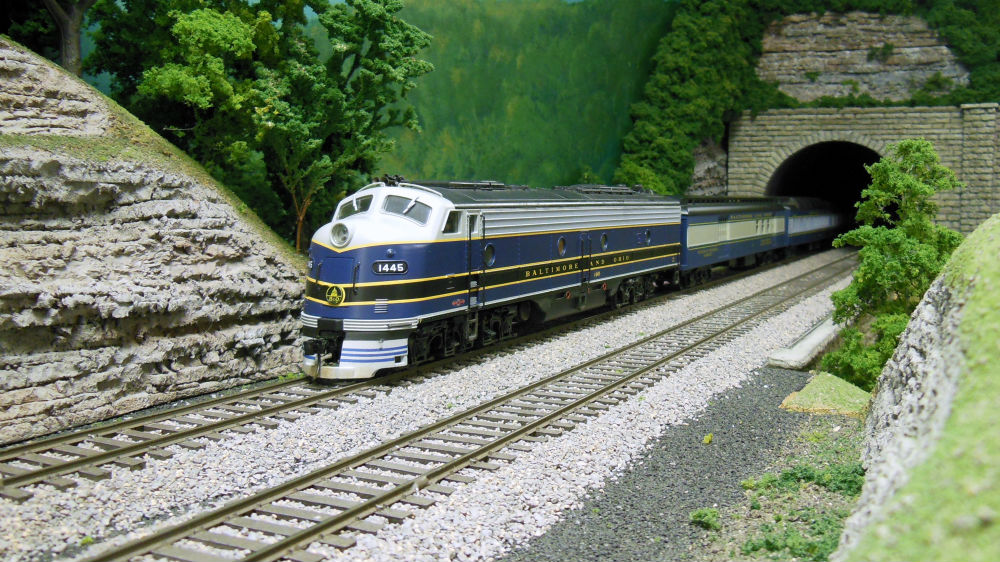 B&O #8, the eastbound Shenandoah, passes the eastbound Pittsburgher at New Castle Junction, PA