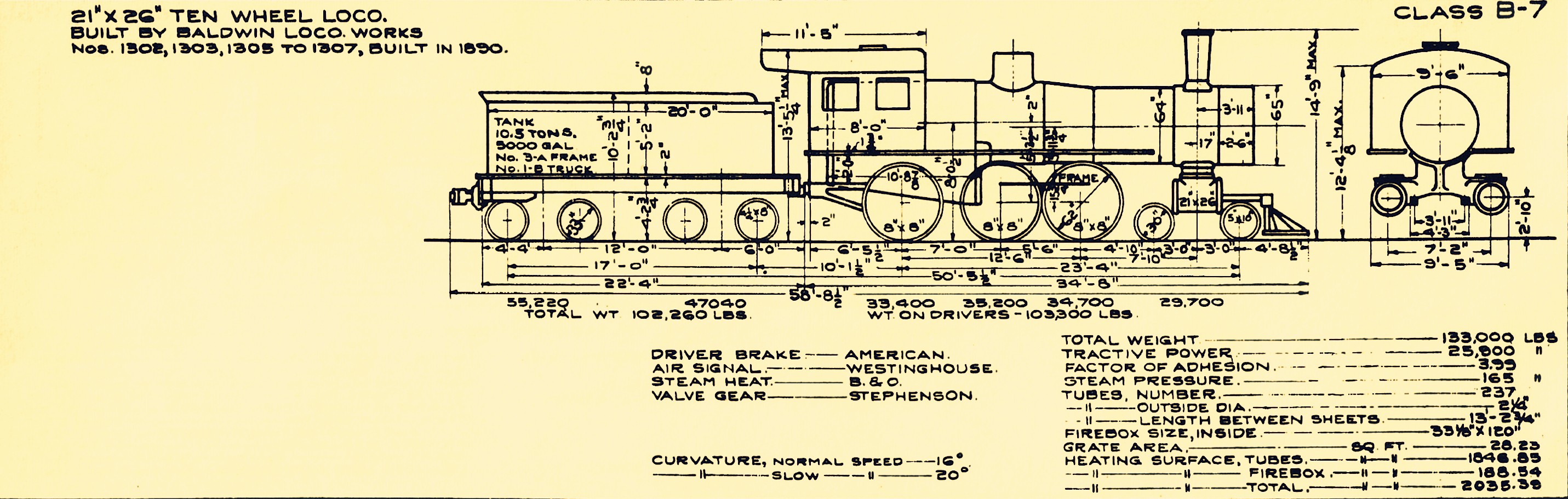 Here are links to steam locomotive diagrams copied from Baltimore and Ohio locomotive diagram books. The books were put together by the railroad's mechanical engineering department.